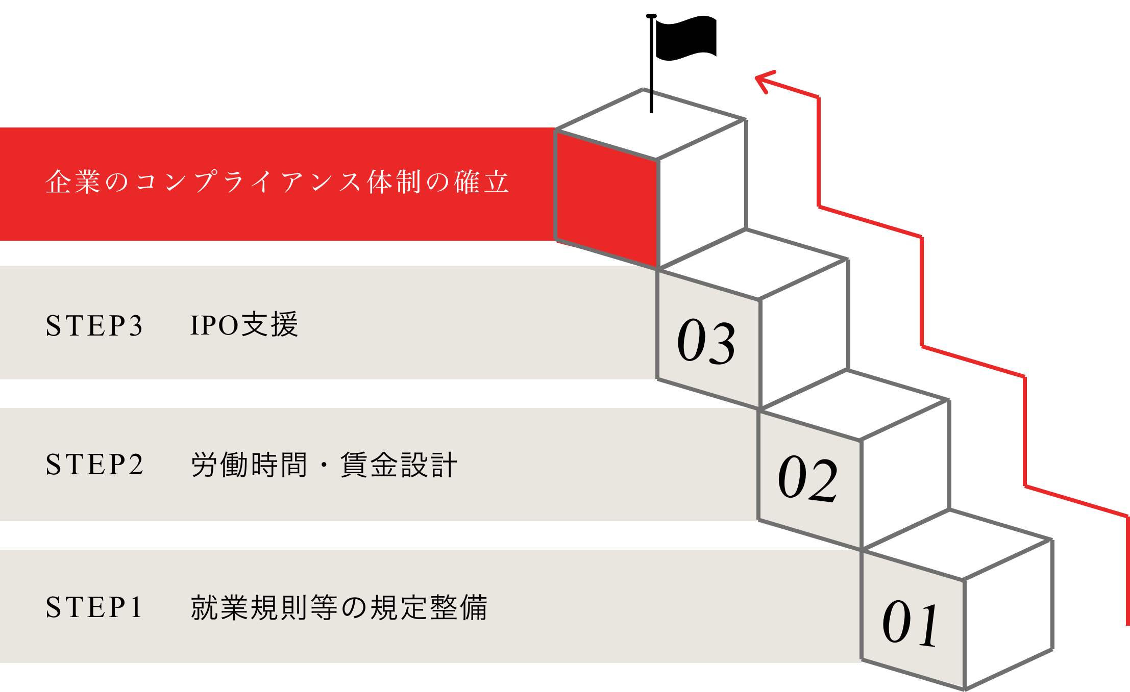 IPOコンサルティングにおきましては、経営管理体制の骨格となる組織、職務権限などの制度の確立と