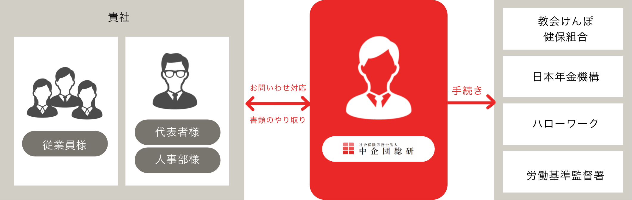 事務手続きから給与計算まで一気通貫で対応可能です。